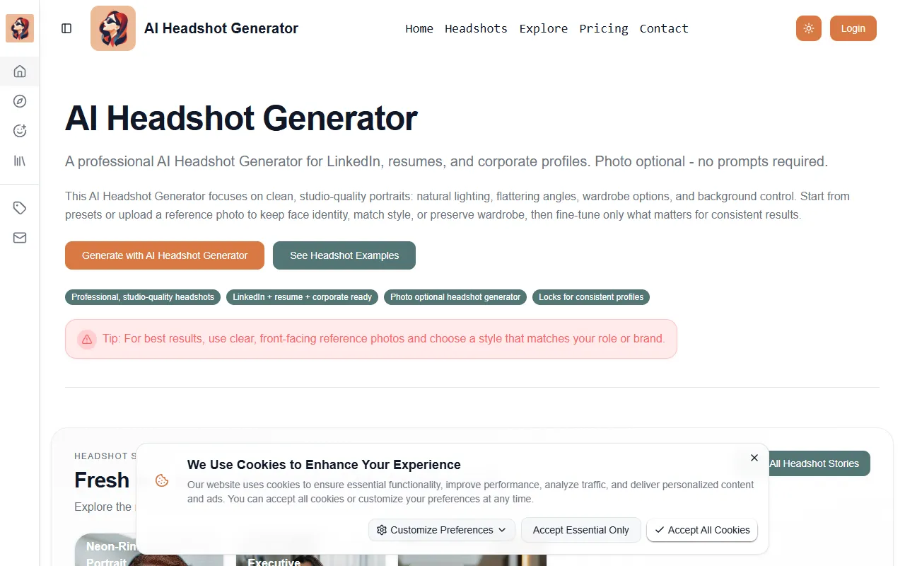 HeadshotGenAI creates professional, consistent business portraits with customizable styles and quick results.