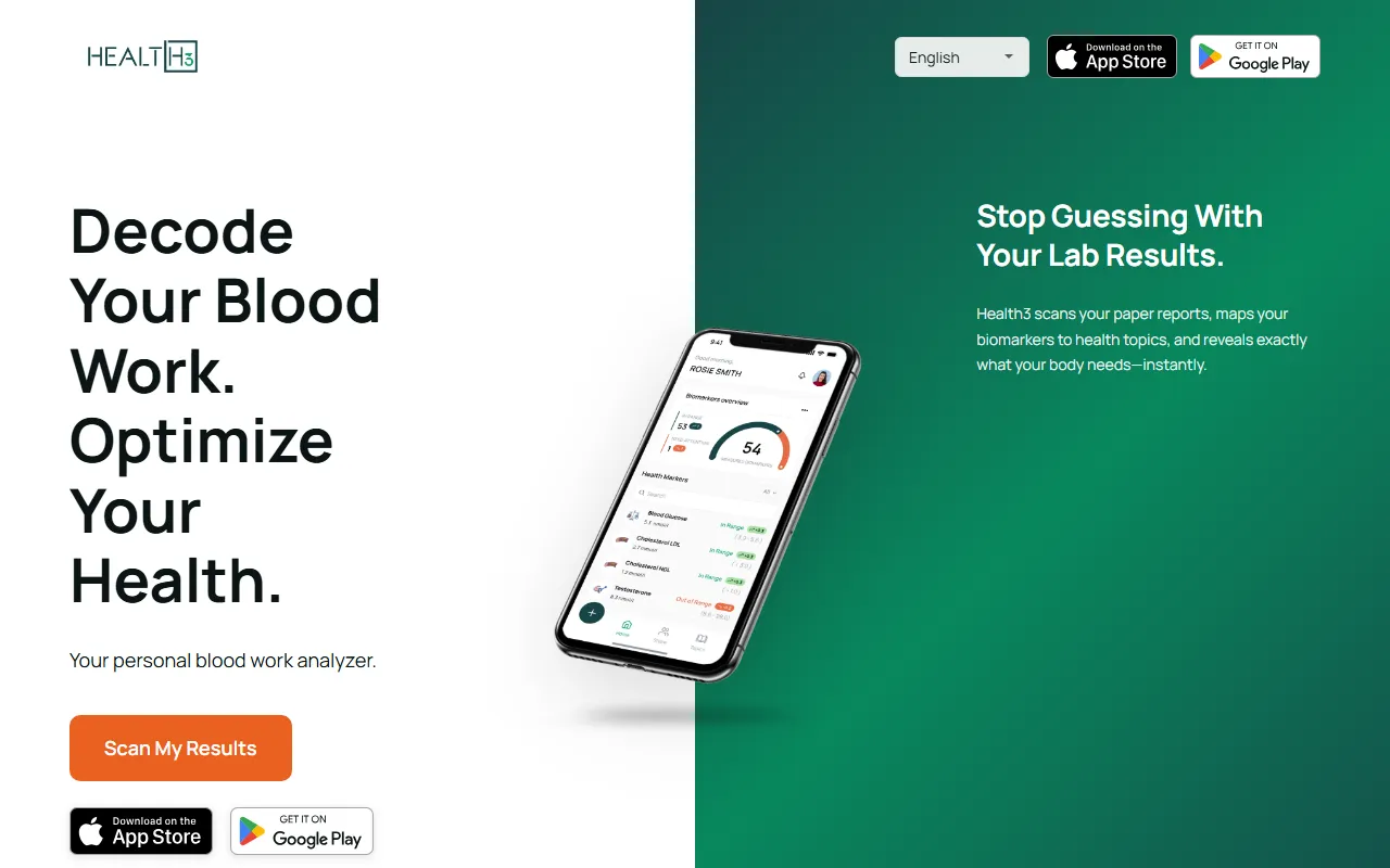 Health3 digitizes lab results, reveals biomarker links, and offers personalized health insights.