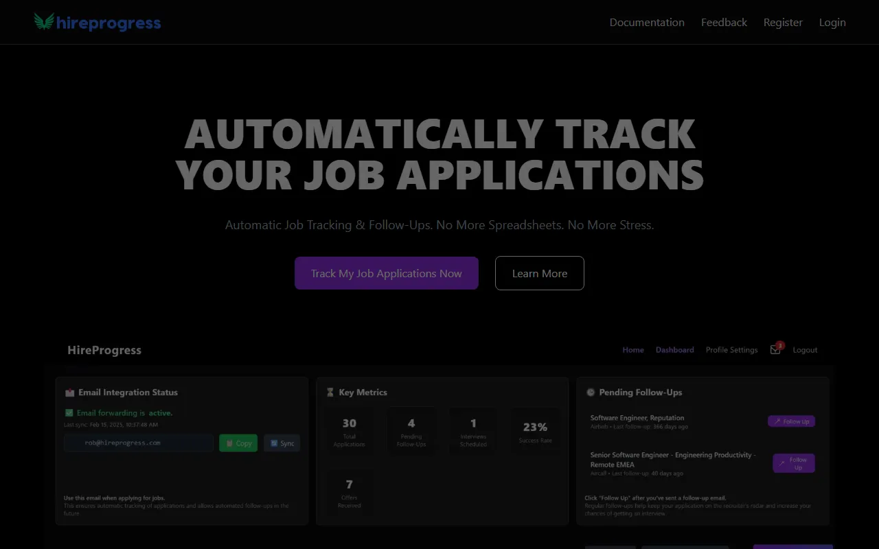 HireProgress.com automates job application tracking and follow-ups to boost organization and efficiency.