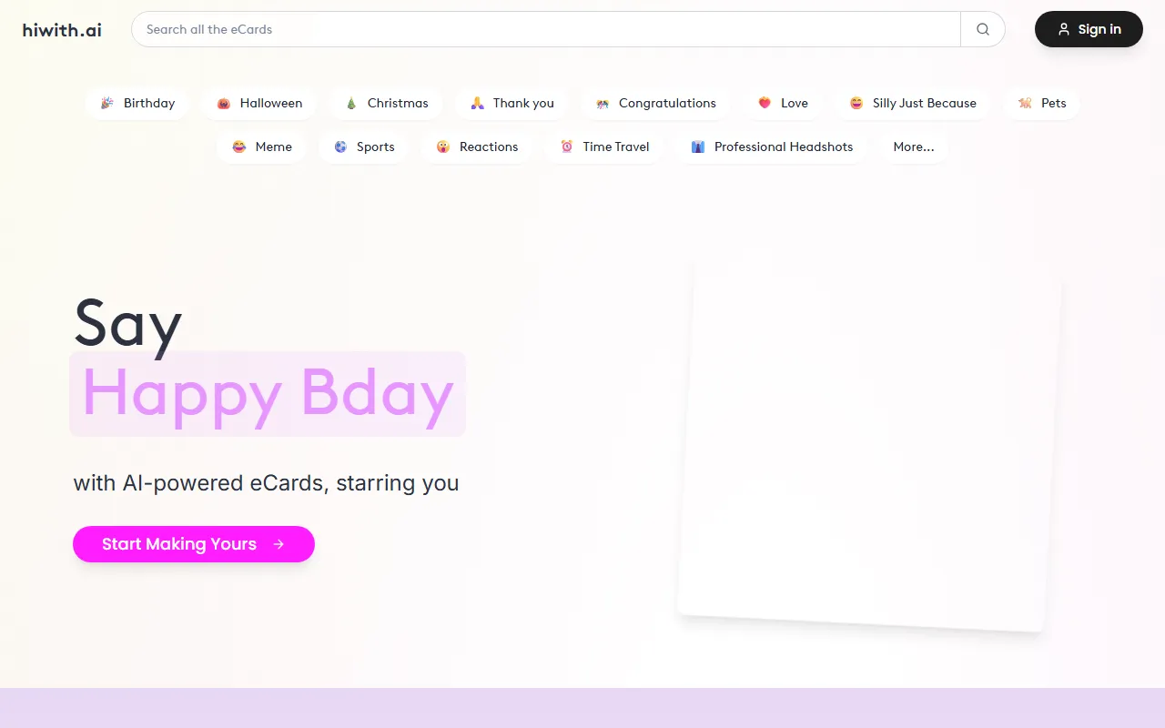 HiWith AI creates personalized, cinematic AI-powered eCards for memorable, shareable greetings.