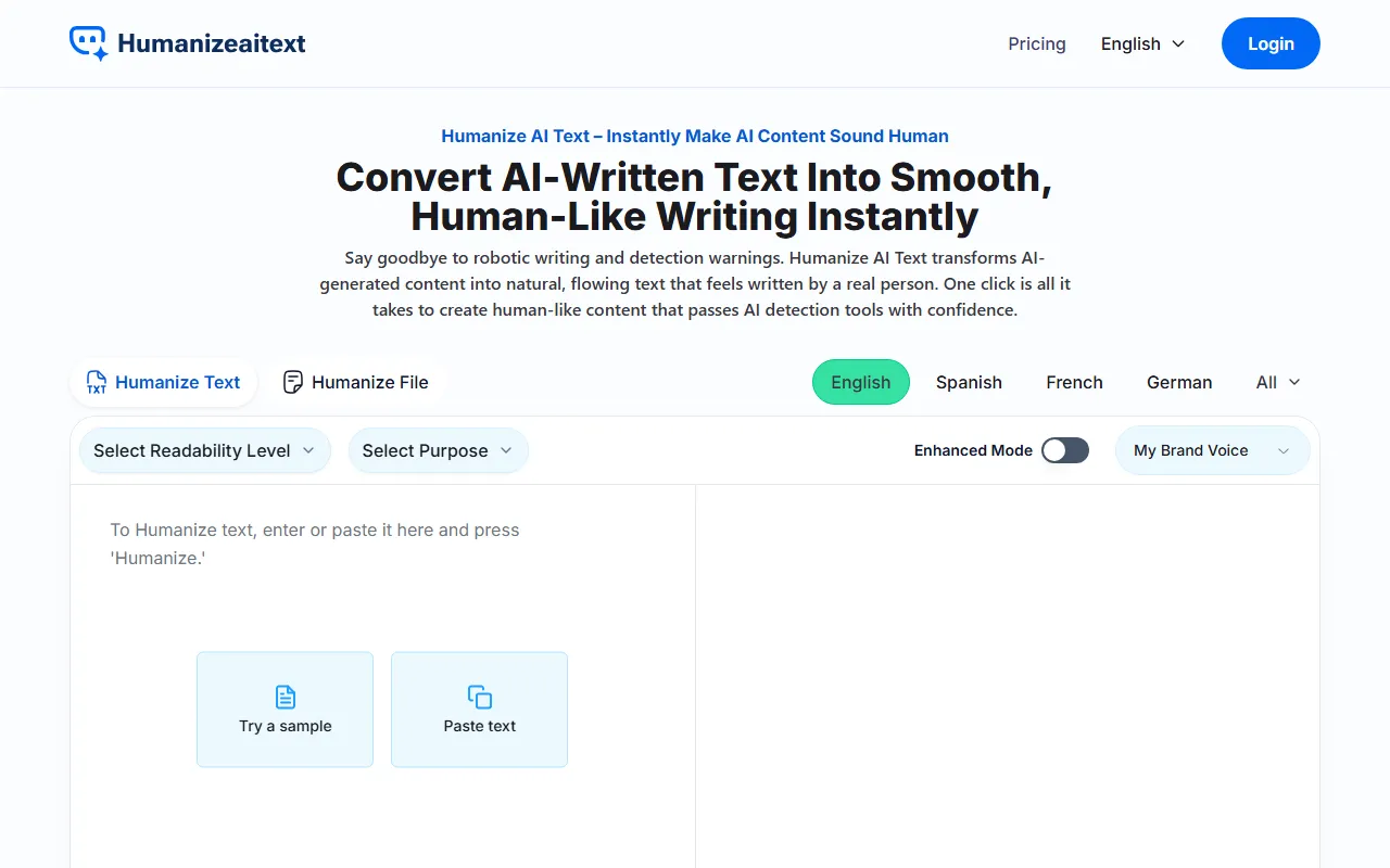Humanize AI Text instantly rewrites AI drafts into natural, fluent, and undetectable human-like content.