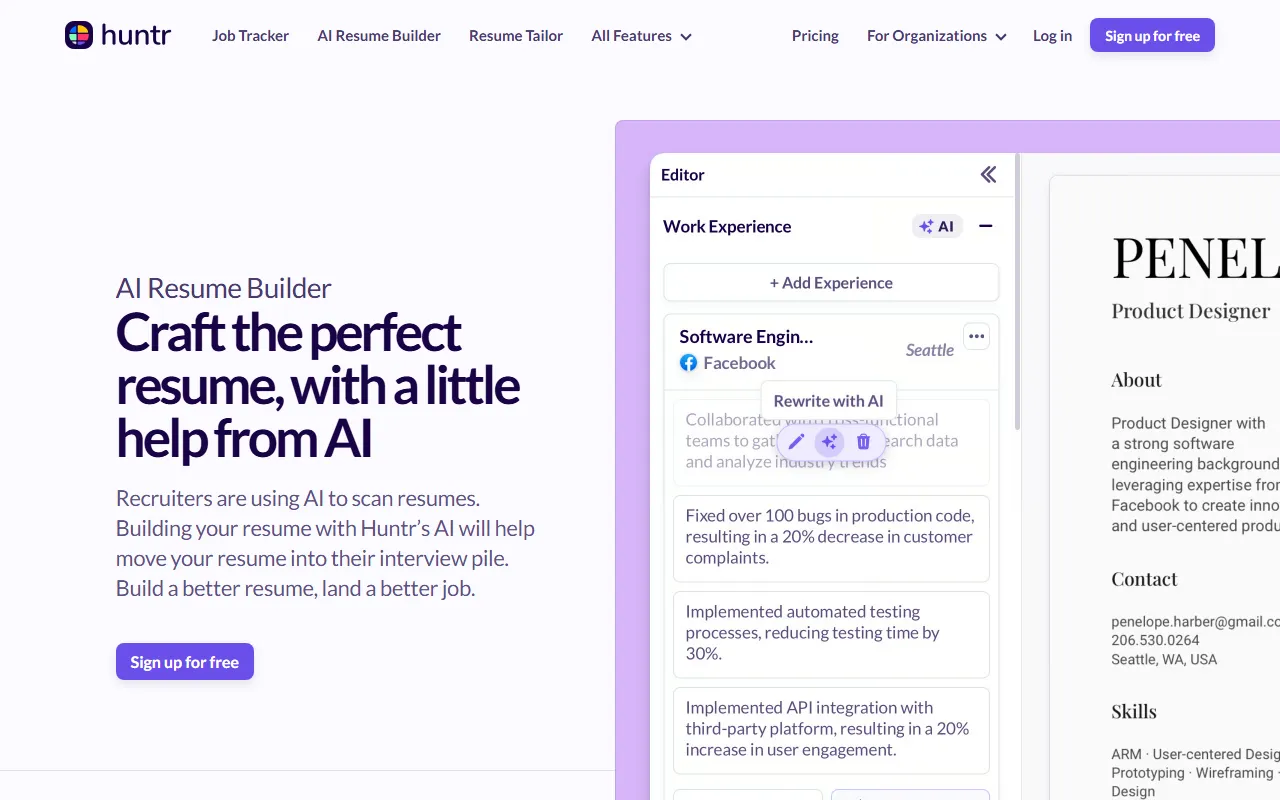 - AI content generation: The ai content generation module in Huntr is designed with real-world usage in mind, providing practical tools that integrate smoothly into existing workflows without disruption. Users can configure this feature to match their specific requirements.