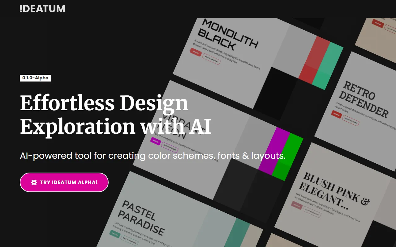 Ideatum is making waves in the AI Productivity space with its focused approach to productivity and workflow optimization. Instantly create color schemes, fonts, and layouts for your project. Design made effortless. Rather than trying to be everything to everyone, the platform has carved out a niche by concentrating on what professionals, teams, and business leaders actually need to streamline more effectively.
