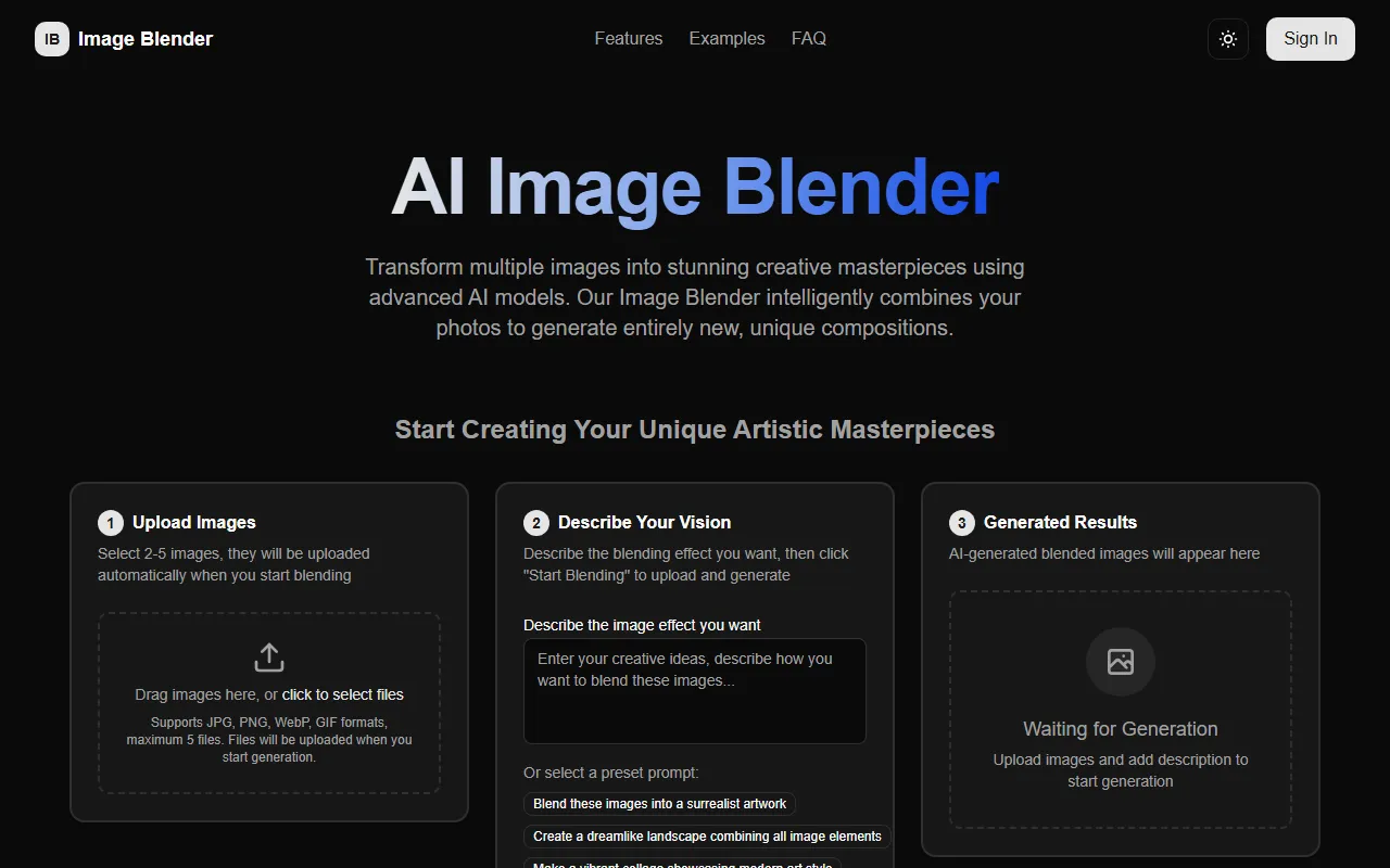 Image Blender enters the AI Image Generation arena as a purpose-built AI solution for designers, artists, and creative professionals. AI Image Blender creatively fuses multiple photos, ensuring seamless, artistic, and harmonious blends. In a market crowded with generic tools, Image Blender distinguishes itself through its specialized focus on delivering measurable results in image creation and visual design and a user experience designed to get you productive from day one.