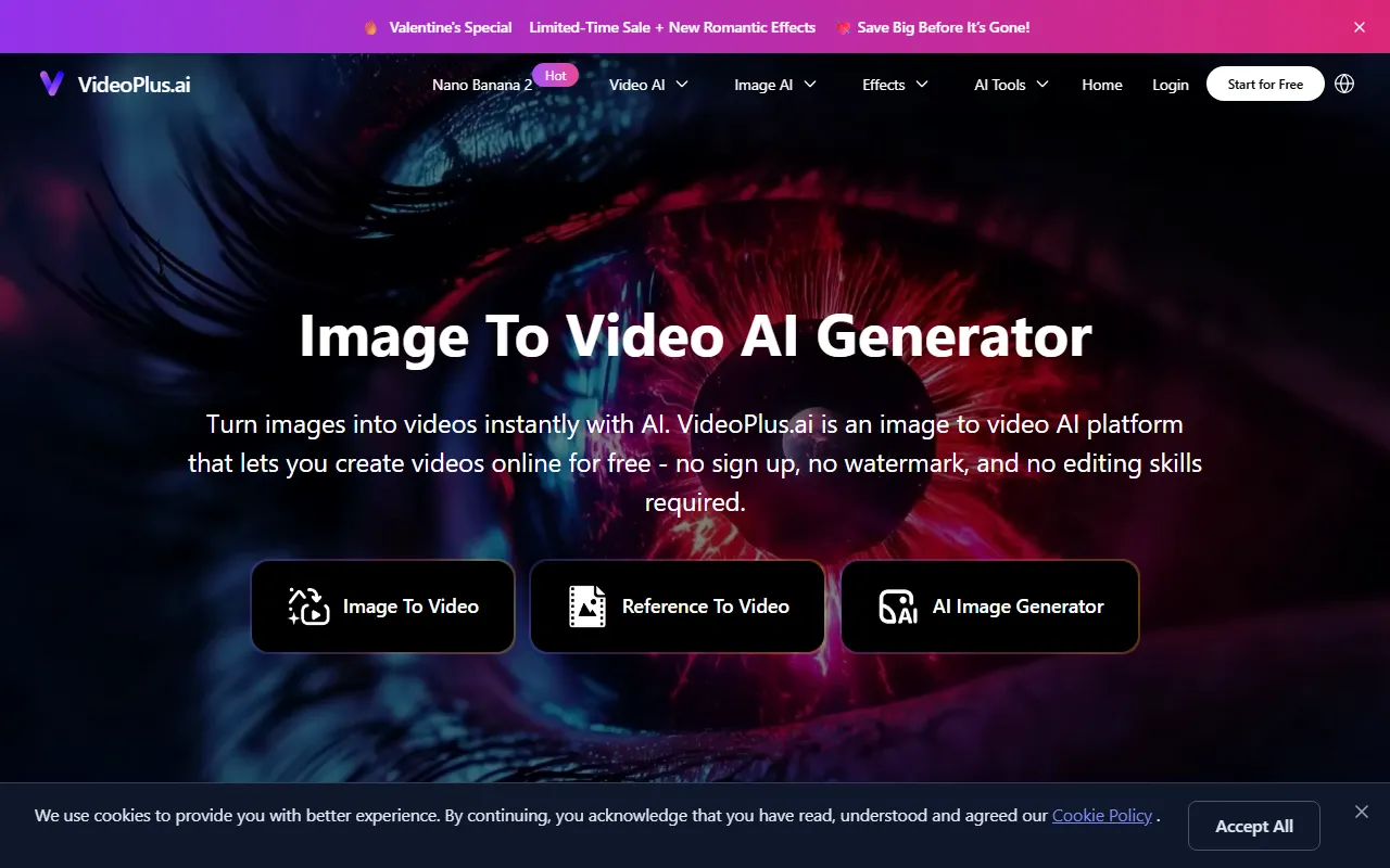 Image To Video AI Generator enters the AI Image Generation arena as a purpose-built AI solution for designers, artists, and creative professionals. VideoPlus.ai instantly transforms images into stunning, 4K videos with fast, easy, precise AI. In a market crowded with generic tools, Image To Video AI Generator distinguishes itself through its specialized focus on delivering measurable results in image creation and visual design and a user experience designed to get you productive from day one.