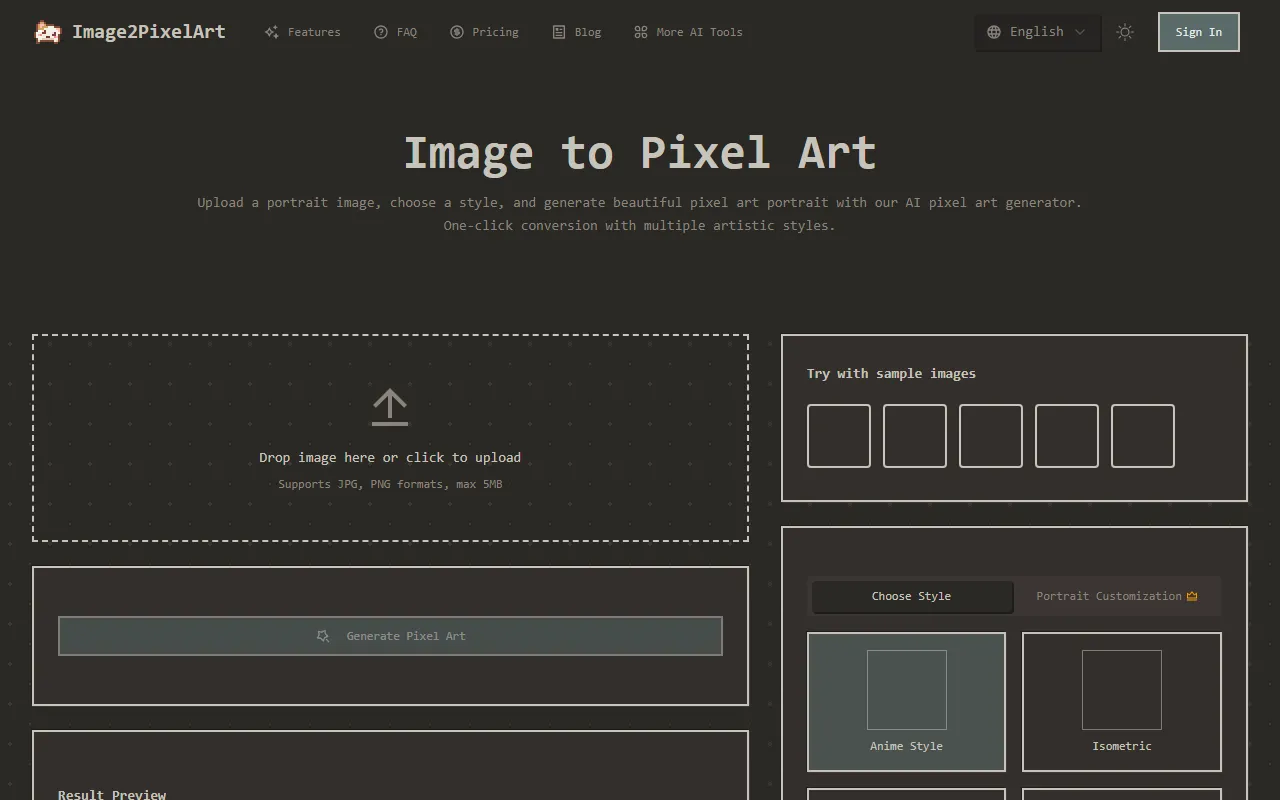 Image2PixelArt enters the AI Image Generation arena as a purpose-built AI solution for designers, artists, and creative professionals. Image2PixelArt quickly creates unique, customizable pixel art portraits from your photos. In a market crowded with generic tools, Image2PixelArt distinguishes itself through its specialized focus on delivering measurable results in image creation and visual design and a user experience designed to get you productive from day one.
