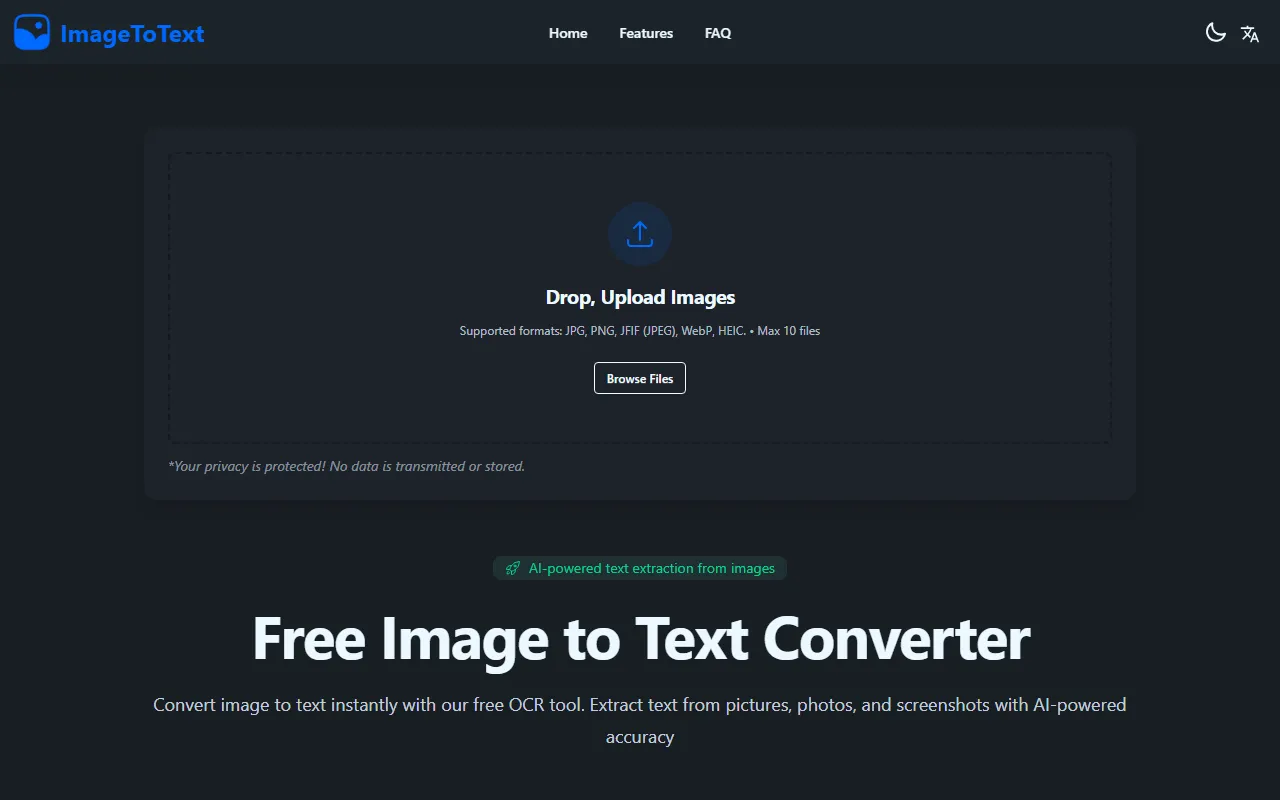 Instantly extract accurate text from any image or photo with AI-powered OCR technology.