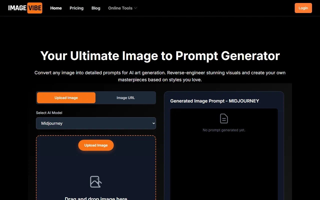 ImageVibe: AI-powered platform converting images and text into optimized prompts for creative workflows.