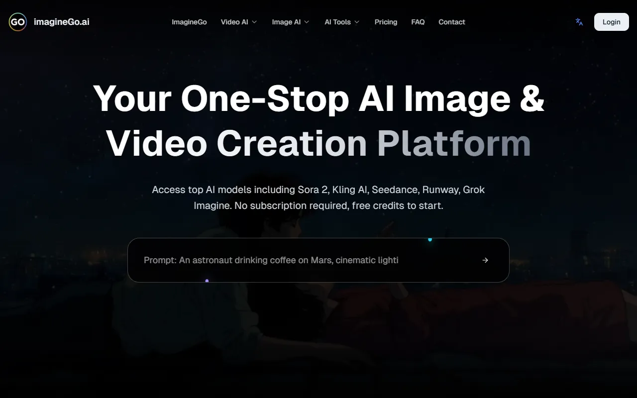 imagineGo.ai offers free, subscription-free access to top AI image and video creation tools.
