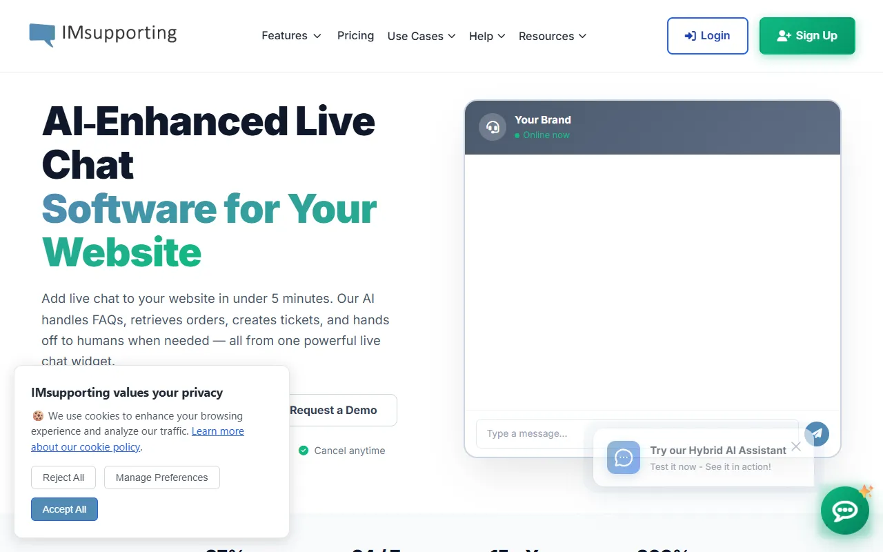 IMsupporting delivers hybrid AI-human live chat for faster, smarter customer support and higher conversions.