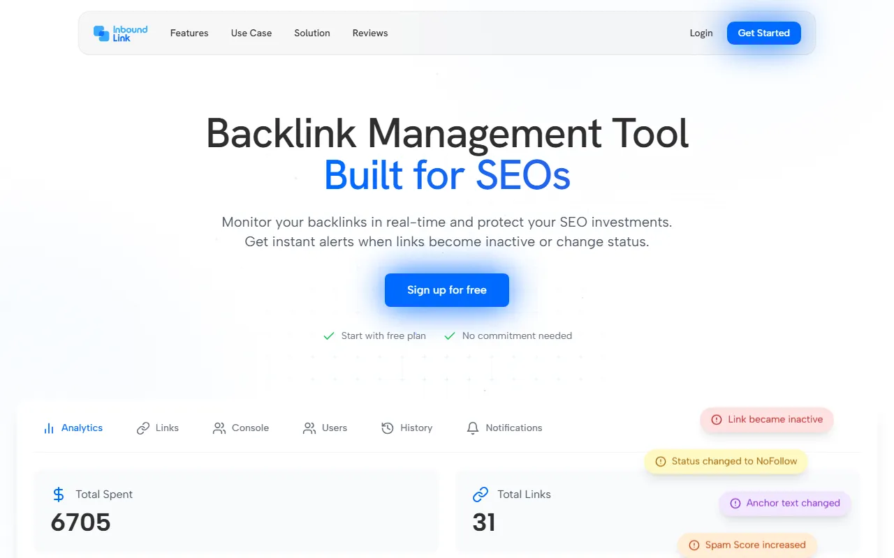 Effortlessly track and manage backlinks, automating updates and notifications for smarter link-building.