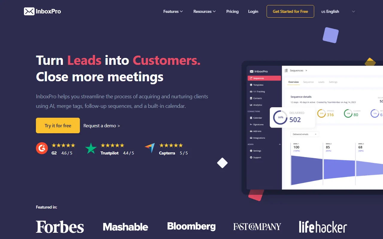 - Customer support: InboxPro provides robust customer support functionality, allowing users to resolve with precision and efficiency. This feature is powered by advanced AI models that adapt to your specific use case and improve over time based on your interactions.