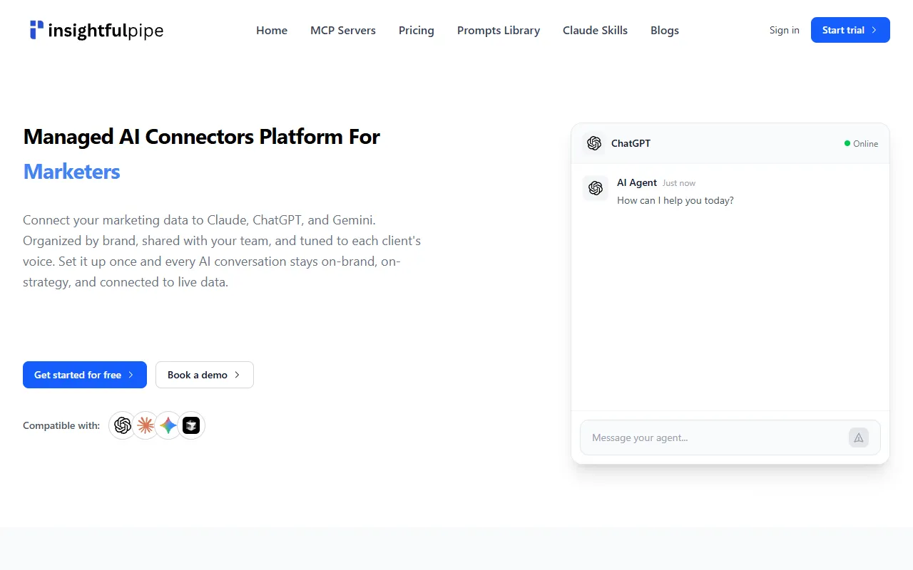 Insightful Pipe connects marketing data to AI assistants for real-time, plain-language insights across 35+ platforms.