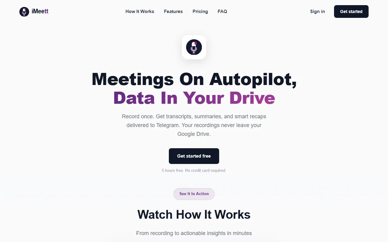 iMeett auto-transcribes and summarizes meetings privately, organizing notes securely in your Google Drive.