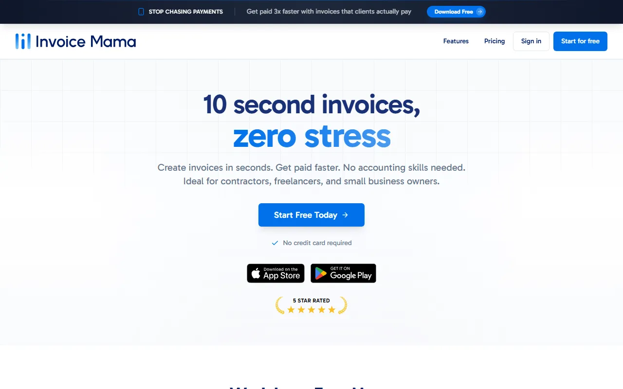 Invoice Mama: Fast, AI-powered invoicing with secure, easy finance management for freelancers.