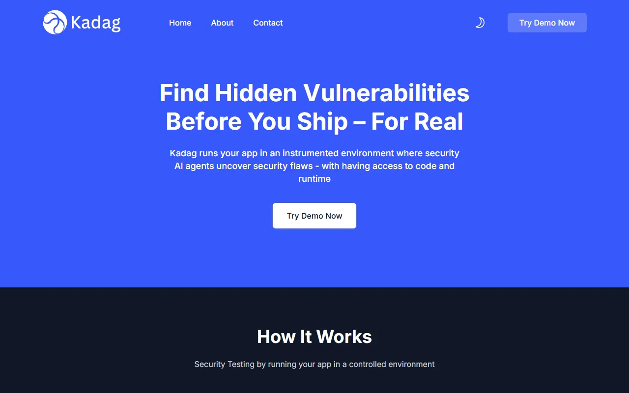 Kadag Security tests apps in sandboxed AI-driven environments for enhanced, automated vulnerability detection.
