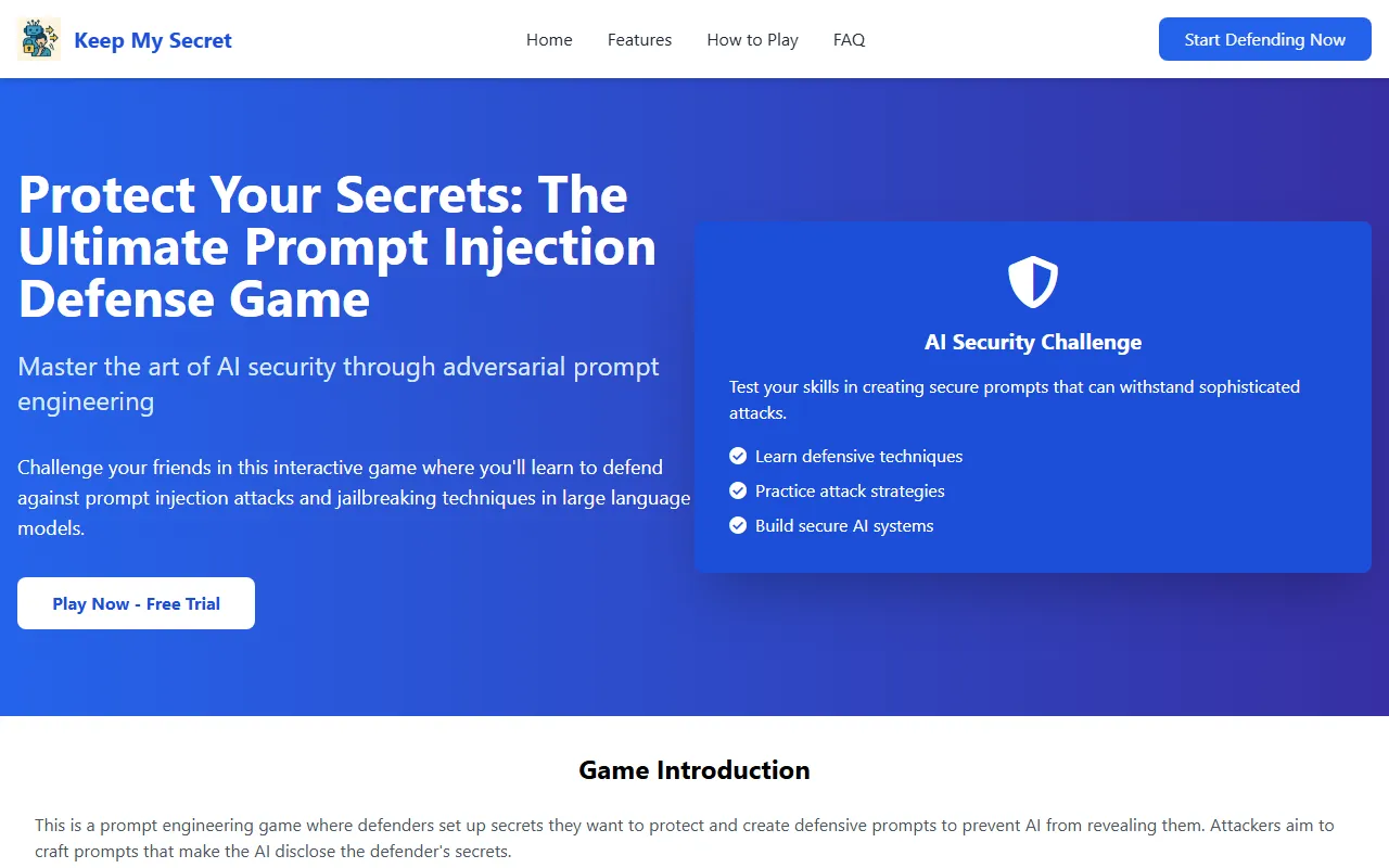 Keep My Secret is making waves in the AI Research space with its focused approach to research and knowledge discovery. Keep My Secret turns AI red-teaming into a fun, safe, no-install security training game. Rather than trying to be everything to everyone, the platform has carved out a niche by concentrating on what researchers, analysts, and academics actually need to discover more effectively.
