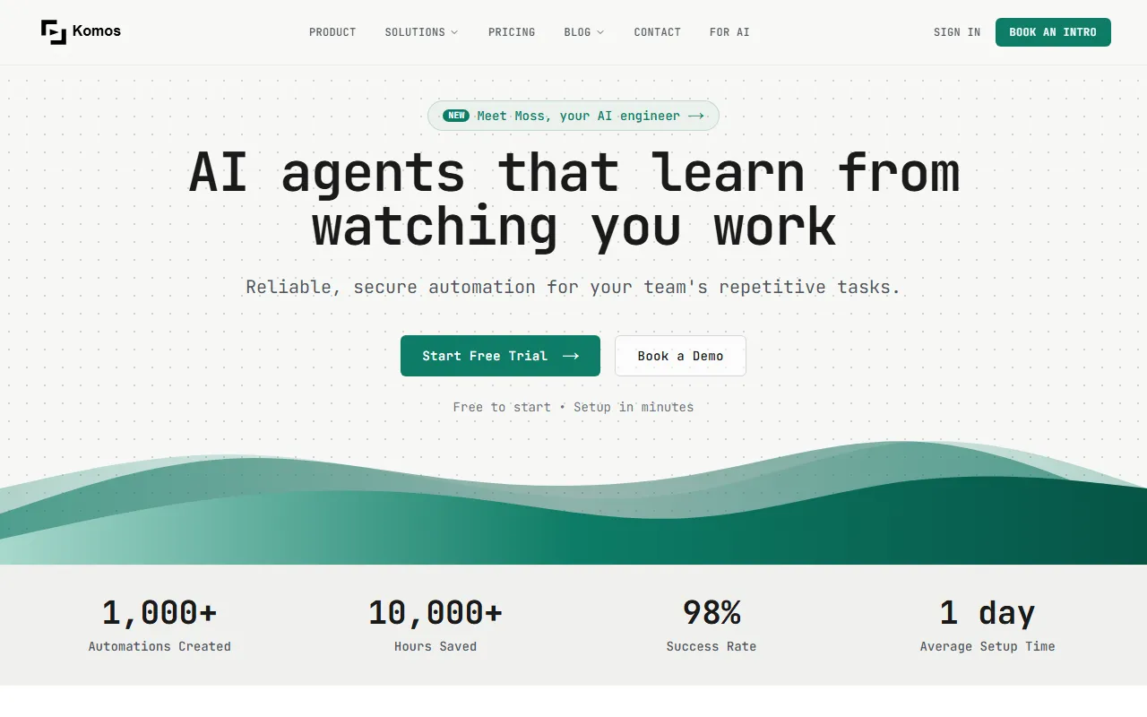 Komos automates browser and document tasks via AI-trained, no-code, resilient workflows with easy integrations.