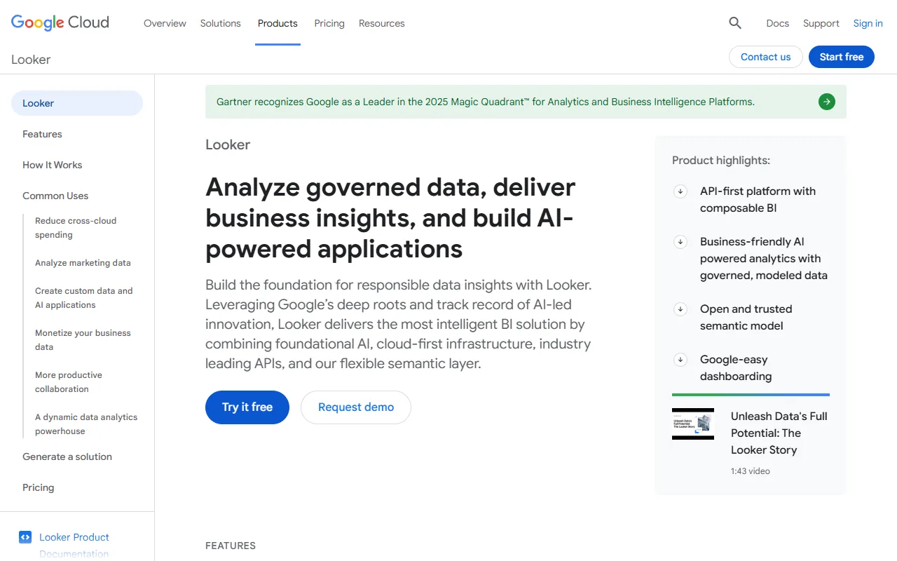 Looker stands out through its principled approach to business intelligence that prioritizes data governance and consistency above all else. While other BI tools make it easy for anyone to create analyses that may use inconsistent definitions and calculations, Looker ensures that every piece of data viewed by any user in the organization has been defined, validated, and approved through the LookML modeling process. This governance-first philosophy, combined with Google Cloud's AI capabilities, enterprise-grade infrastructure, and best-in-class embedded analytics, makes Looker the platform of choice for organizations that view data as a strategic asset requiring the same level of governance and control as any other critical business function.