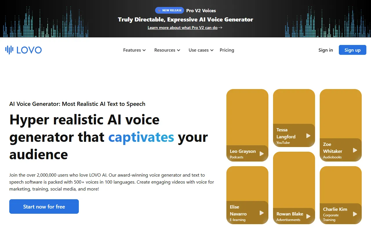 LOVO AI is best suited for podcasters, musicians, and audio engineers who want to process more efficiently without a steep learning curve. The platform is particularly effective for individuals and small teams who need professional-grade audio content but lack the resources to hire specialized staff or invest in enterprise-level solutions.