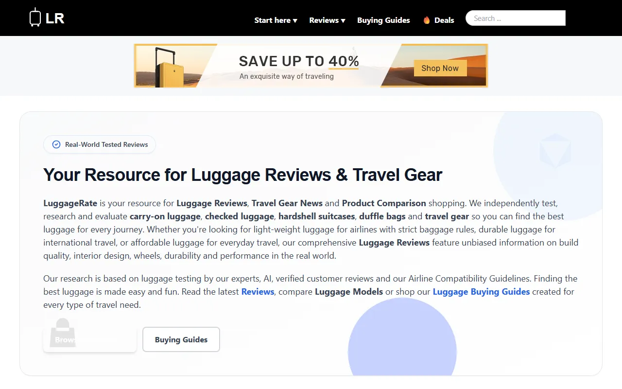LuggageRate uses AI to compare bags, providing honest reviews and tailored buying guides for travelers.