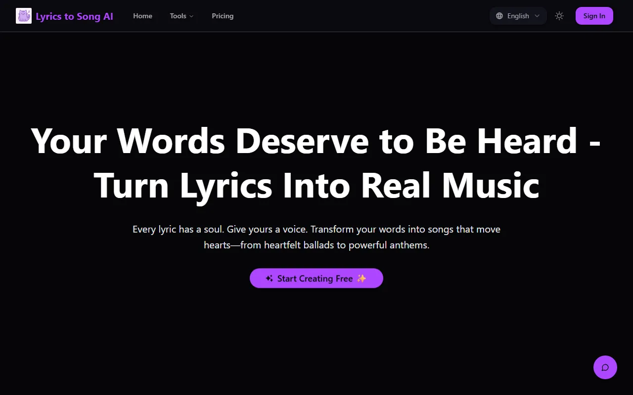 Lyrics to Song AI instantly turns your lyrics into studio-quality songs across all genres.