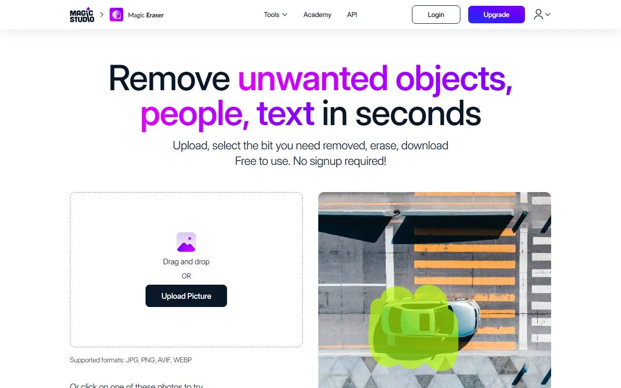 Effortlessly eliminate unwanted elements: upload, mark, and download in seconds—no signup needed.