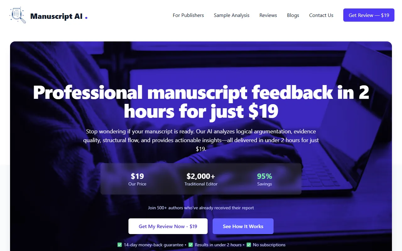 Manuscript AI offers fast, detailed, AI-powered manuscript evaluations with personalized insights and visual reports.