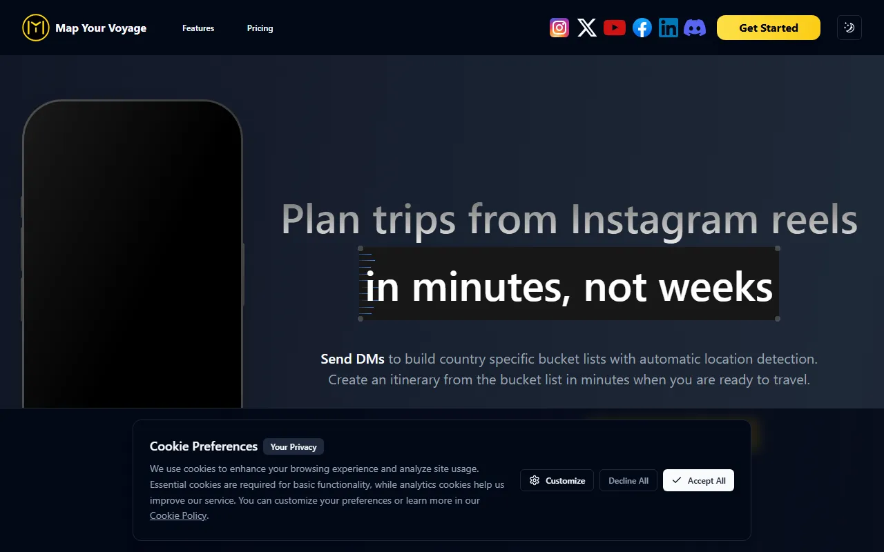 Map Your Voyage enters the AI Assistants arena as a purpose-built AI solution for professionals, teams, and everyday users. Plan personalized trips instantly by turning saved Instagram travel reels into detailed itineraries. In a market crowded with generic tools, Map Your Voyage distinguishes itself through its specialized focus on delivering measurable results in AI assistance and smart automation and a user experience designed to get you productive from day one.