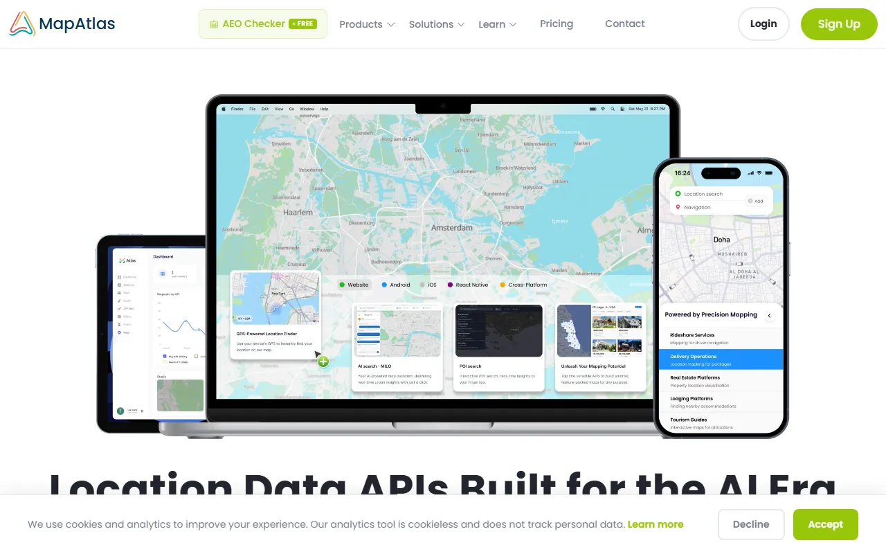 MapAtlas offers fast, customizable global mapping with geocoding, routing, and seamless integration.
