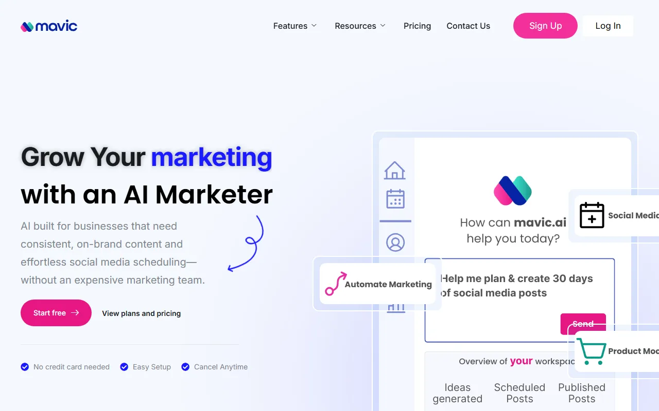 Mavic.ai crafts tailored AI marketing campaigns, content, and social media management—all in one platform.