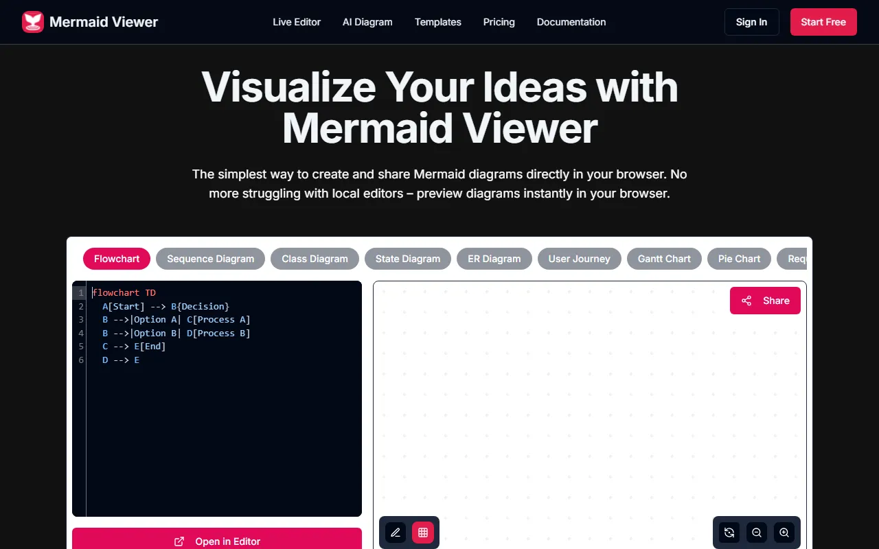 MermaidViewer: AI-powered online tool for fast, collaborative Mermaid diagram creation and export.