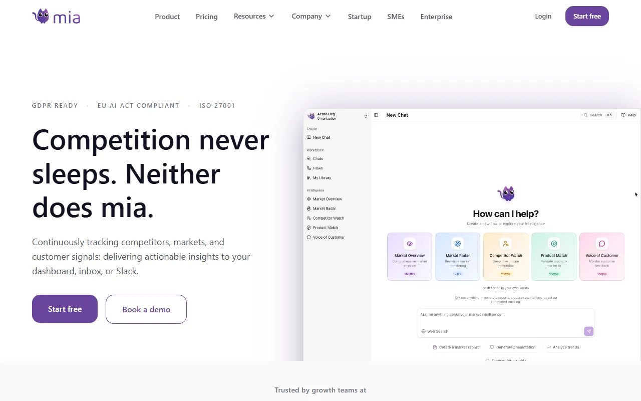In the evolving world of digital marketing and growth, finding the right tool can be the difference between thriving and merely surviving. Mia has positioned itself as a compelling option for marketers, growth hackers, and brand managers who demand more from their AI-powered solutions. mia delivers automated, compliant market intelligence for proactive competitor tracking and growth strategy.