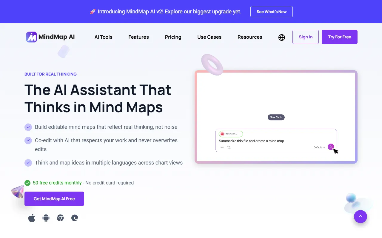 MindMap AI enters the AI Productivity arena as a purpose-built AI solution for professionals, teams, and business leaders. MindMap AI transforms ideas and files into interactive visual maps for smarter teamwork and faster insights. In a market crowded with generic tools, MindMap AI distinguishes itself through its specialized focus on delivering measurable results in productivity and task management and a user experience designed to get you productive from day one.