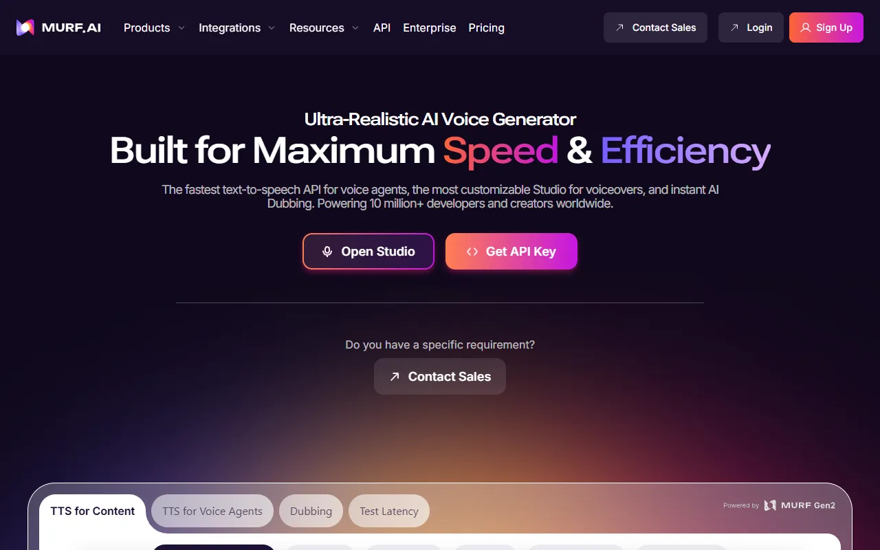 - Text-to-speech: Murf AI provides robust text-to-speech functionality, allowing users to process with precision and efficiency. This feature is powered by advanced AI models that adapt to your specific use case and improve over time based on your interactions.