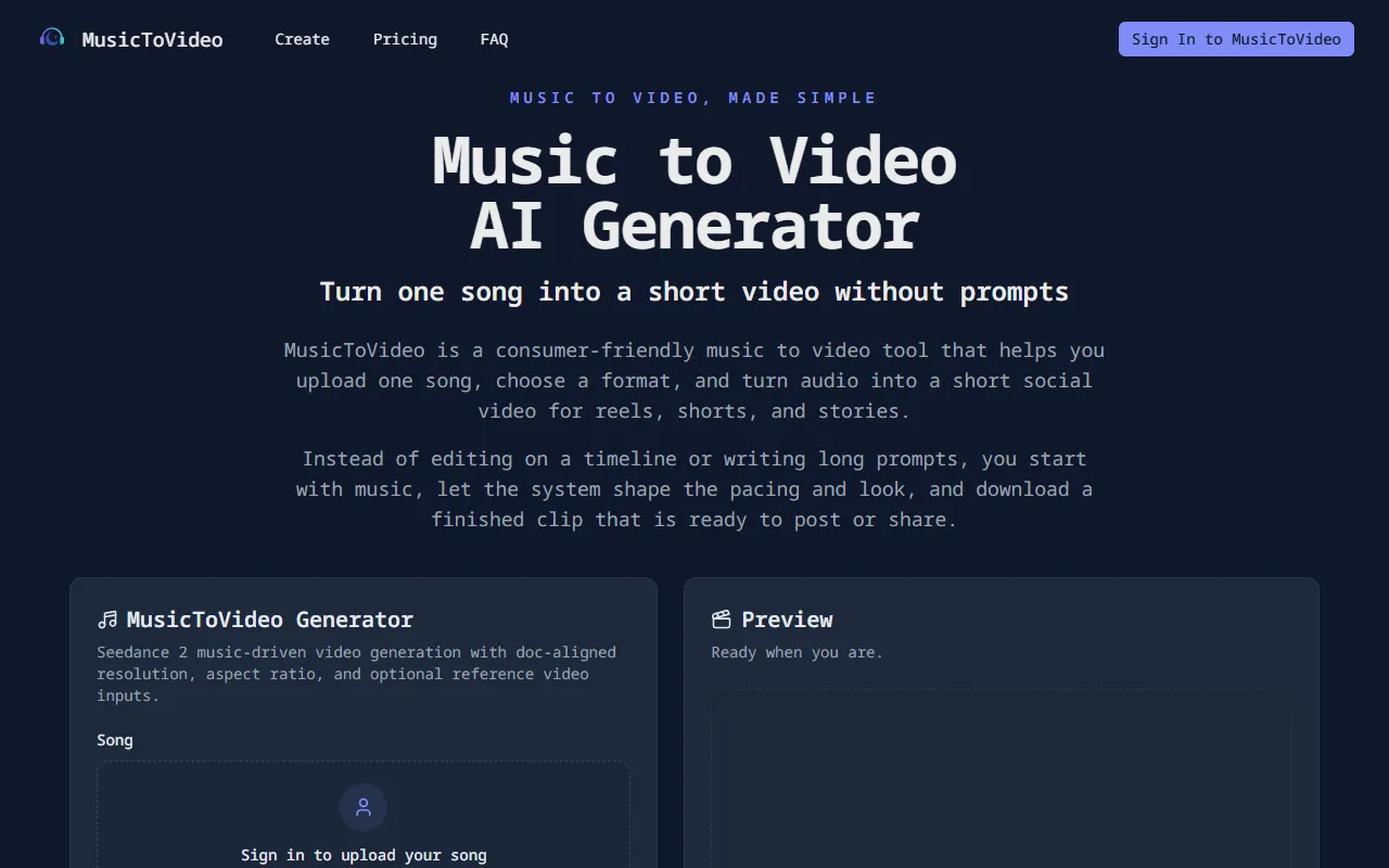 musictovideo.im quickly transforms music and audio into shareable, polished videos for creators.
