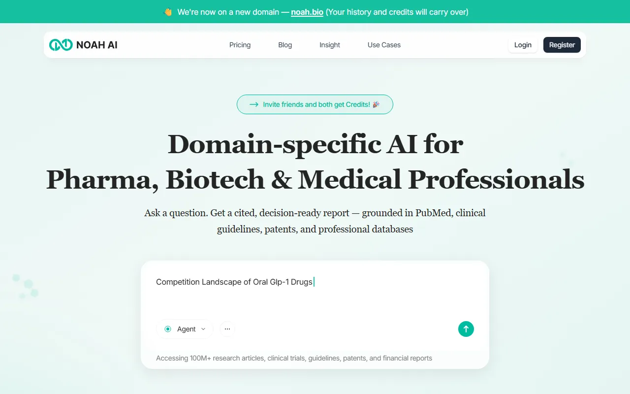 Noah: Expert biomedical AI that defines problems, plans tasks, summarizes research, and offers evidence-based insights.