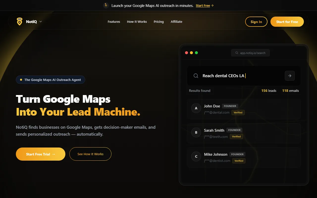 NotiQ automates AI-driven, personalized local business outreach using Google Maps for easy prospecting.