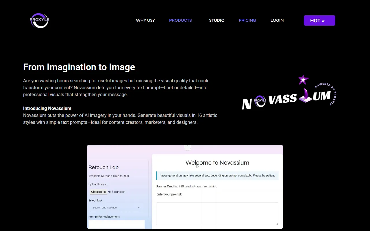 Novassium generates styled AI images in WordPress, enabling fast, customizable featured visuals with editing and API integration.