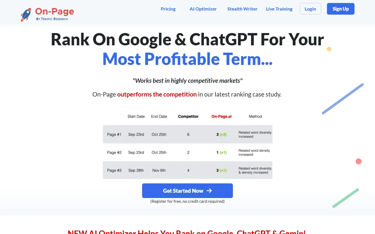 On-Page.ai enters the AI Marketing arena as a purpose-built AI solution for marketers, growth hackers, and brand managers. Unlock top Google rankings effortlessly with AI-driven SEO tools and insightful predictive strategies. In a market crowded with generic tools, On-Page.ai distinguishes itself through its specialized focus on delivering measurable results in digital marketing and brand growth and a user experience designed to get you productive from day one.