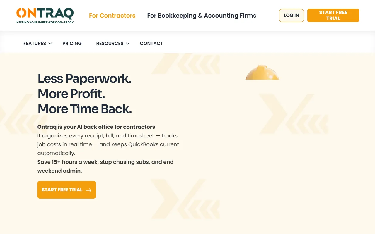 OnTraq AI streamlines construction bookkeeping with AI, boosting accuracy, saving time, and integrating seamlessly.