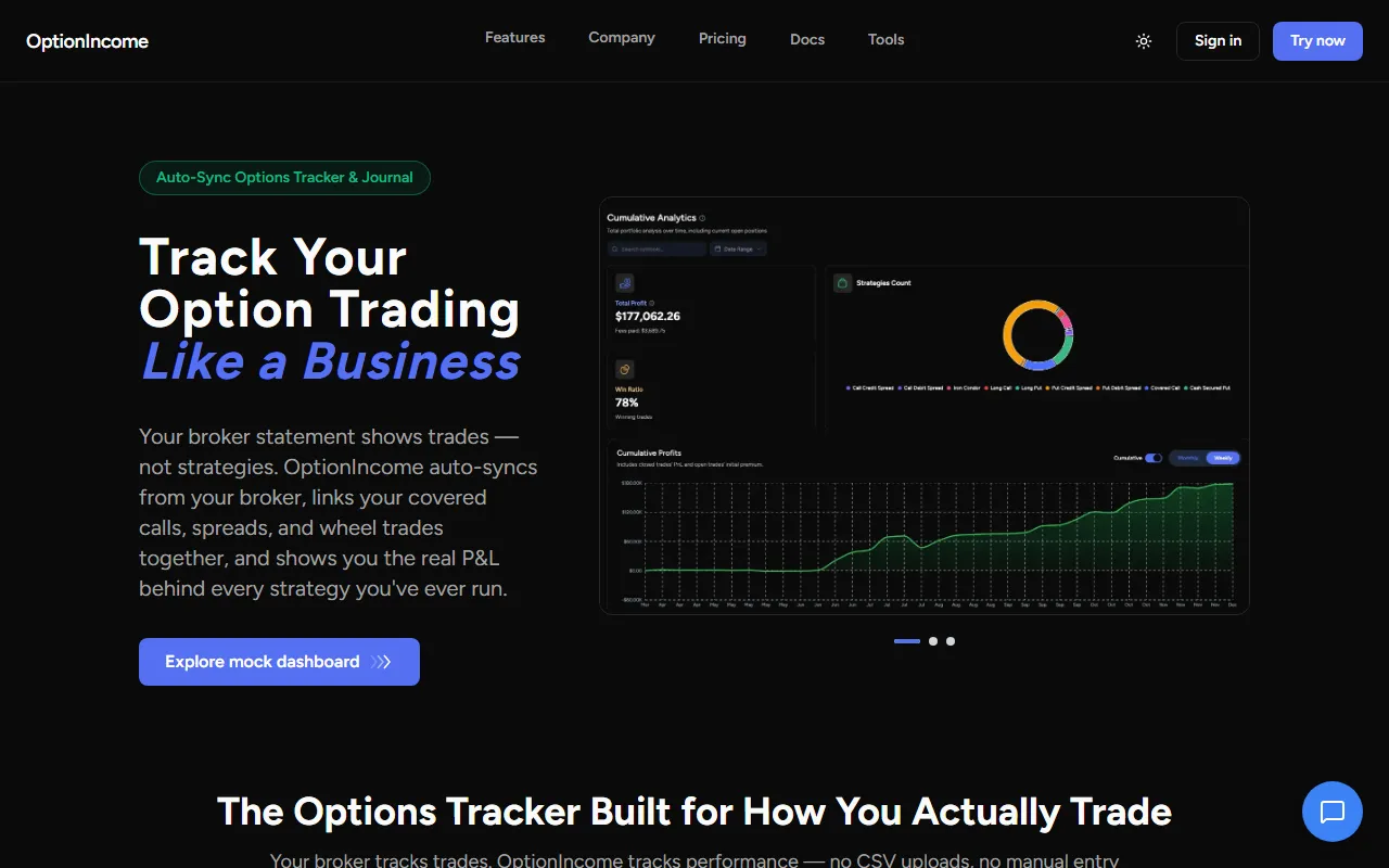 For professionals, teams, and business leaders seeking smarter ways to handle productivity and workflow optimization, OptionIncome presents an intriguing proposition. OptionIncome automates option trade tracking and analytics, simplifying portfolio management and performance insights. The platform aims to bridge the gap between complex AI technology and practical, everyday utility, making advanced capabilities accessible without requiring deep technical expertise.