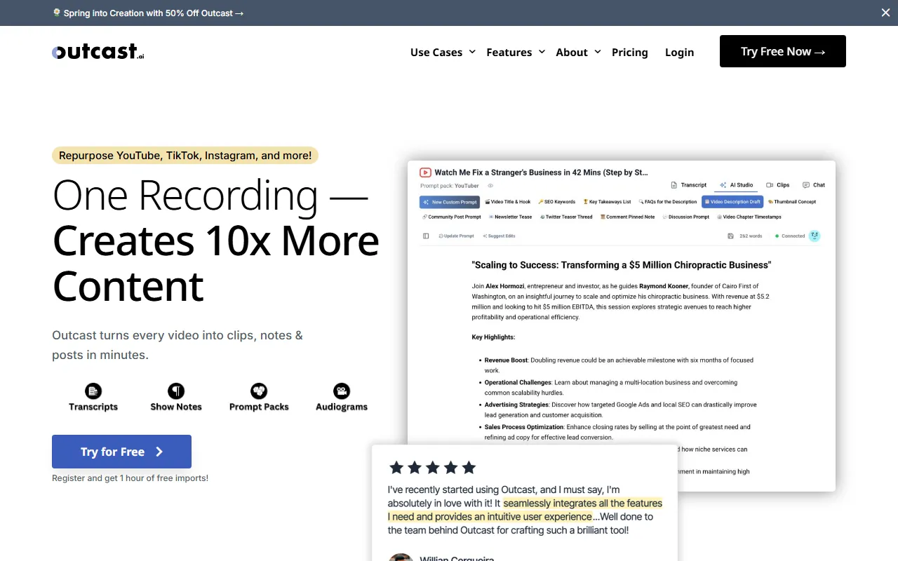 Beginners will benefit from the guided experience and templates that help them get started quickly, while experienced professionals will appreciate the depth of control and customization available beneath the surface. This dual-layer approach makes Outcast.ai accessible without being simplistic, catering to a wide spectrum of expertise levels.