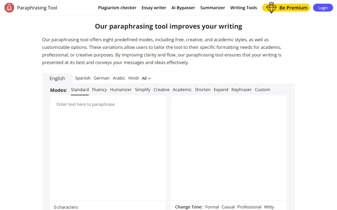 - Text summarization: Paraphrasing Tool includes a dedicated text summarization engine that processes your inputs intelligently. The system learns from each interaction, delivering increasingly personalized and accurate results the more you use it.