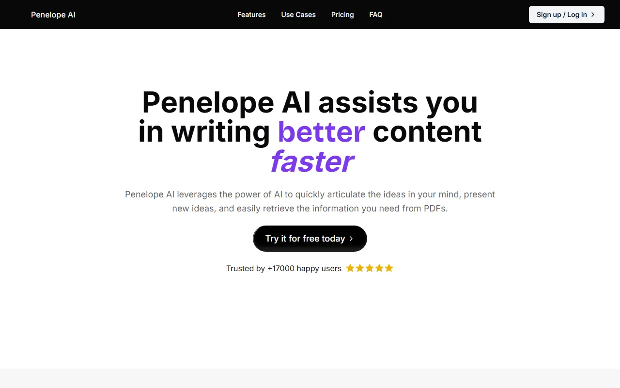 - AI writing: Penelope AI provides robust ai writing functionality, allowing users to streamline with precision and efficiency. This feature is powered by advanced AI models that adapt to your specific use case and improve over time based on your interactions.
