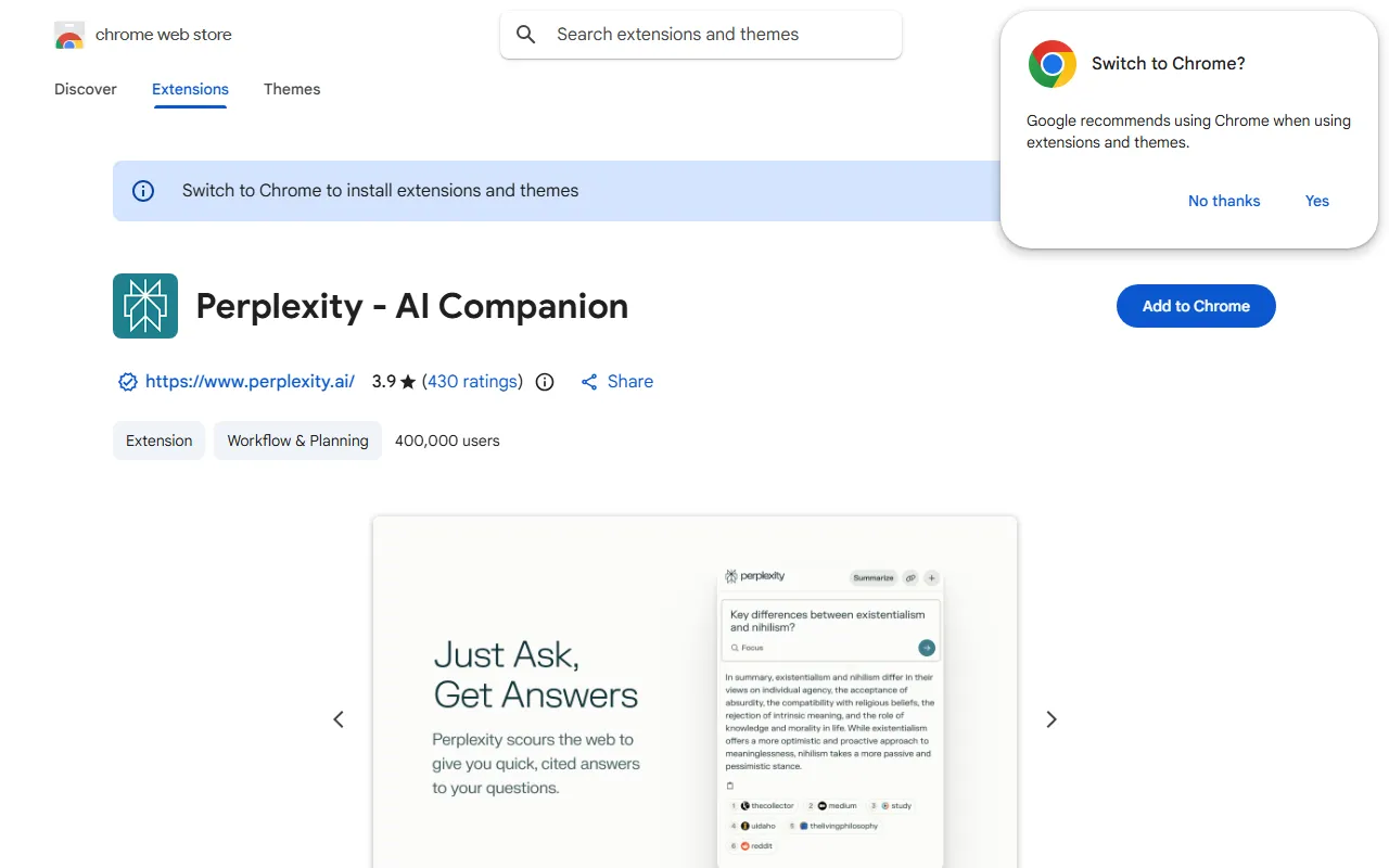 Perplexity for Chrome is a strong contender in the productivity and workflow optimization space that warrants serious consideration. Its AI-driven approach to helping professionals, teams, and business leaders streamline more effectively is both practical and well-executed, backed by a user experience that respects your time and intelligence. The platform delivers on its core promises without overcomplicating the experience.