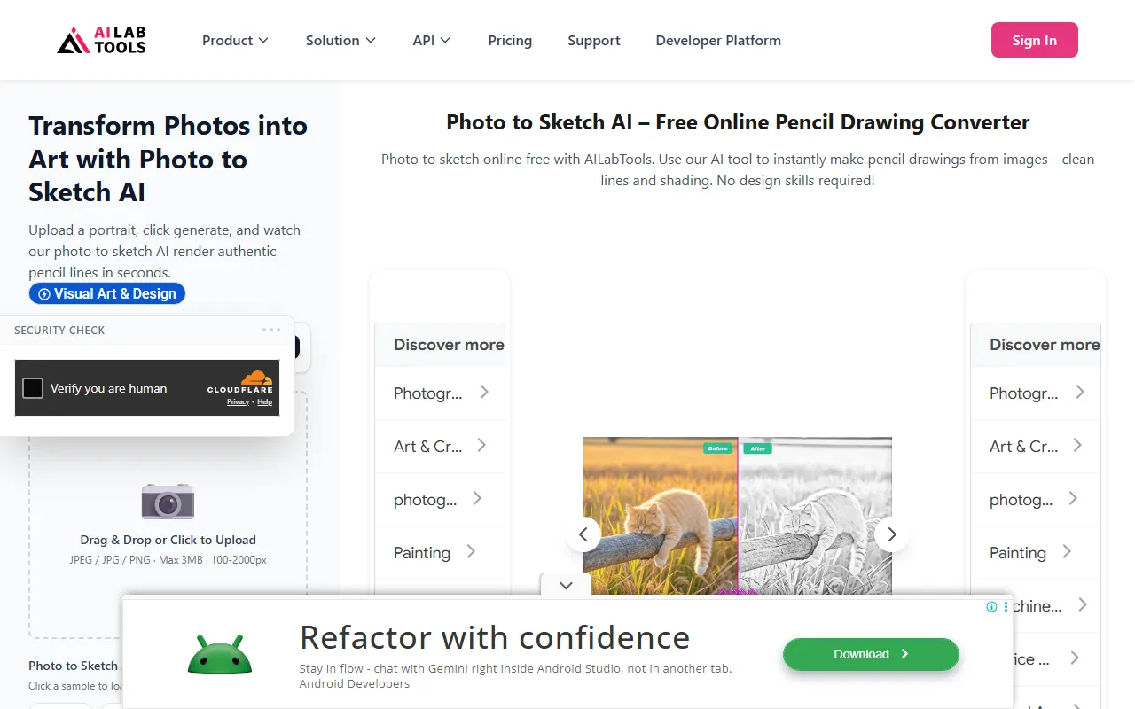 Photo to Sketch AI creates realistic pencil sketches from photos quickly, with adjustable styles and high-res downloads.