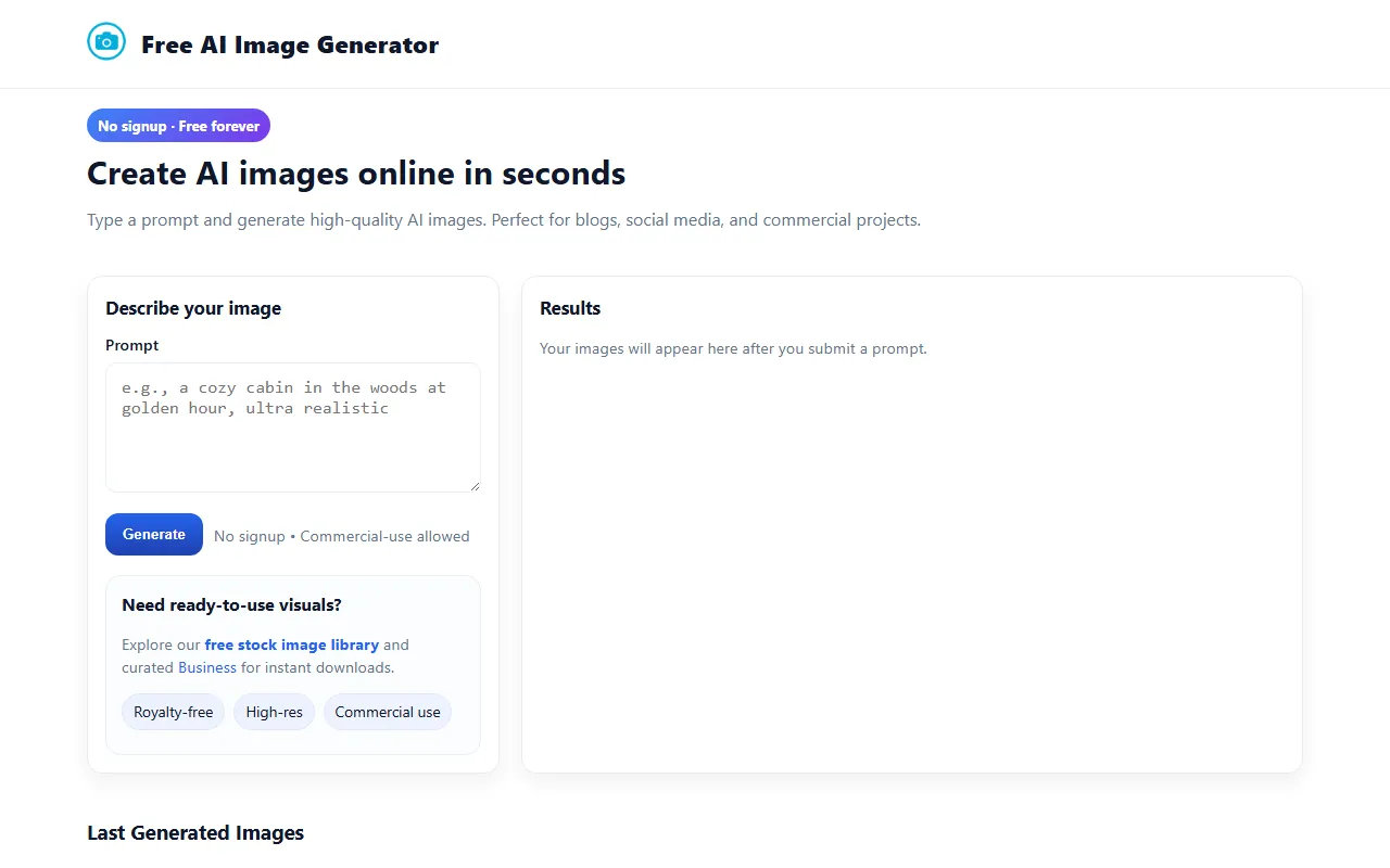Photostock AI generates unlimited, royalty-free, high-resolution images instantly—no signup needed.
