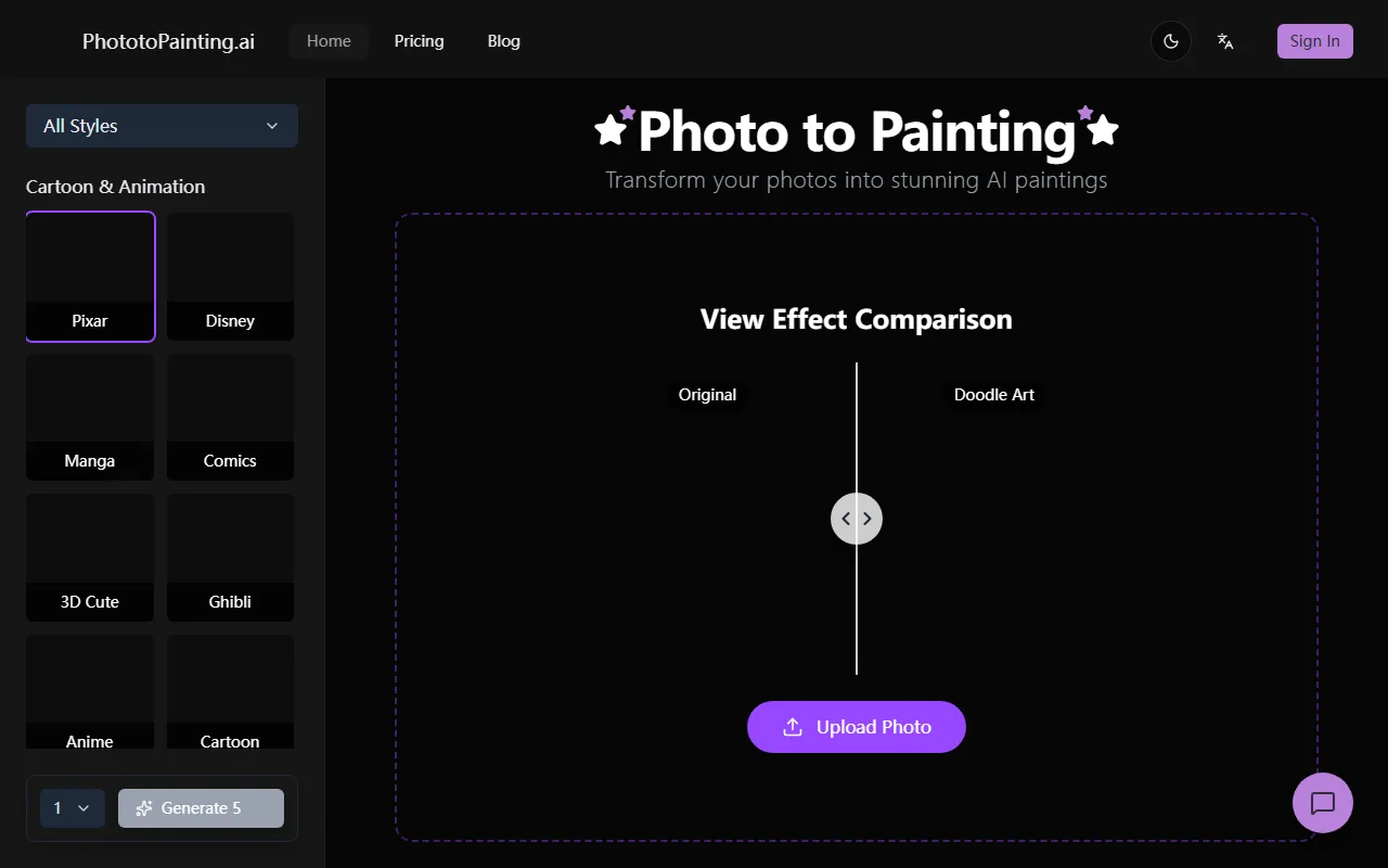 AI-powered tool that transforms photos into beautiful paintings in various artistic styles.