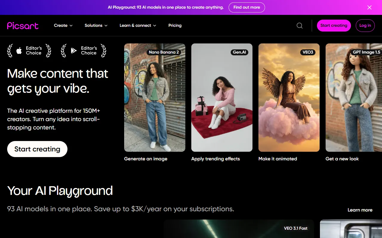 - Creative: With built-in creative capabilities, Picsart AI helps professionals, teams, and everyday users tackle this aspect of their workflow head-on. The AI-driven approach ensures consistent, high-quality output every time while reducing manual effort significantly.